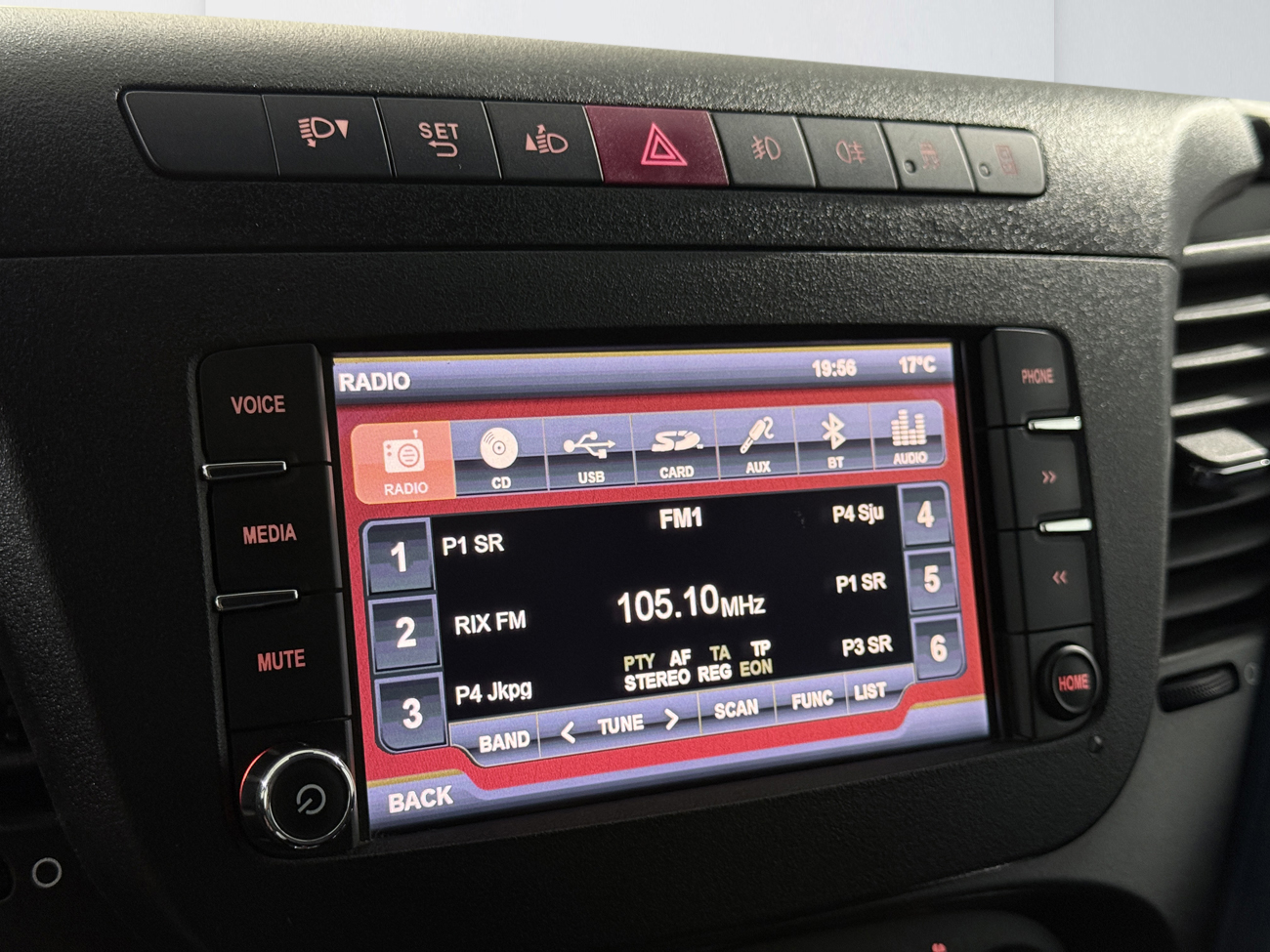 Bilen står på sommardäck med mönsterdjup 6/6/5/5 mm.