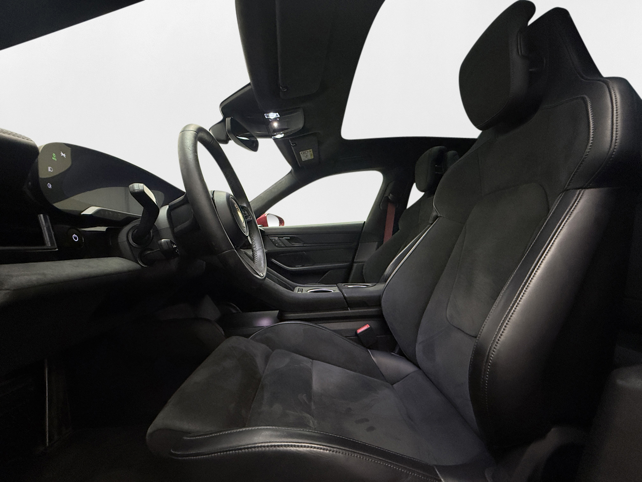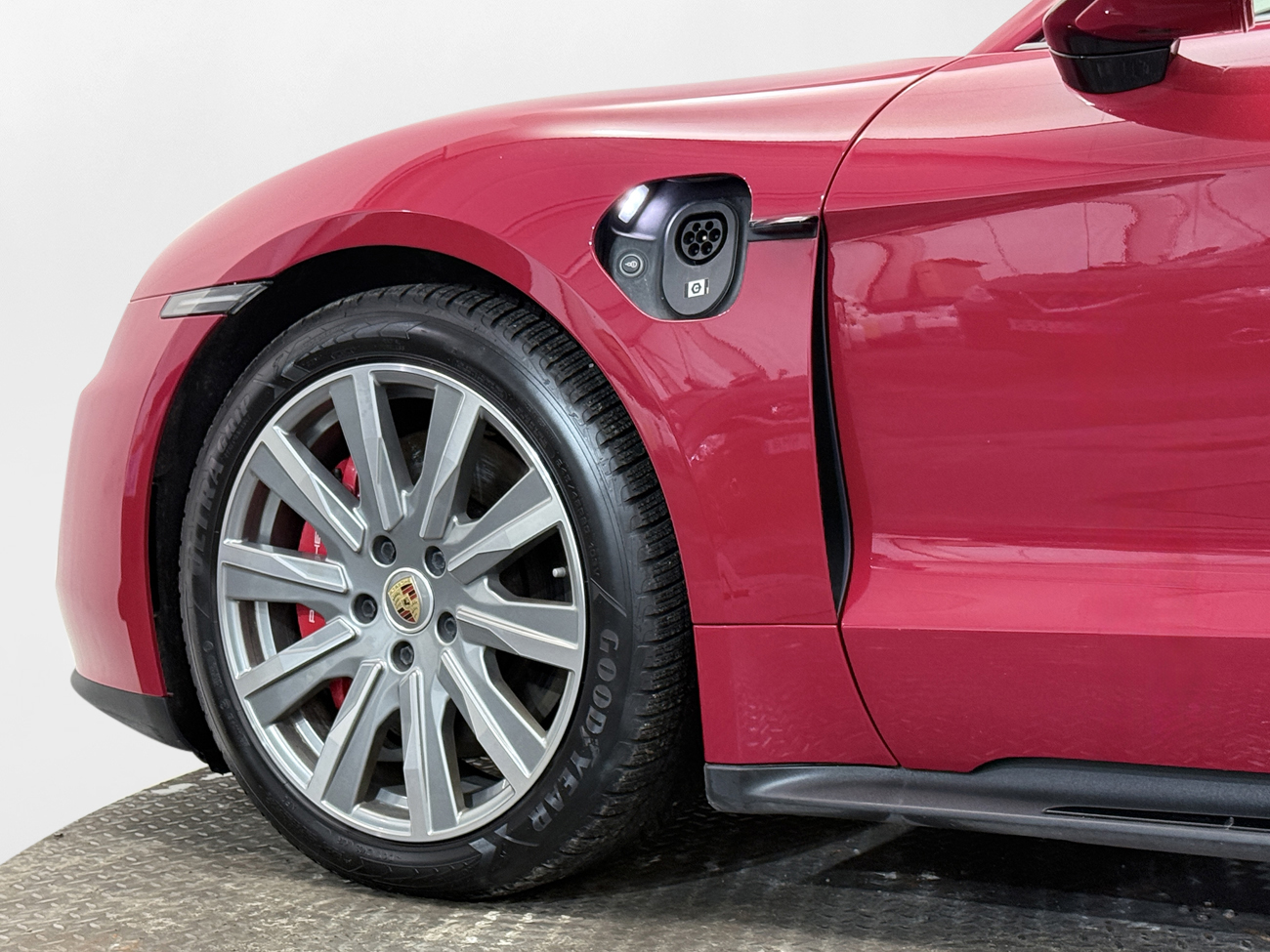 Utrustningen inkluderar bland annat: 93,4 kWh, CCS Snabbladdning, Elektrisk Laddlucka, 21″, AWD, Power Steering Plus, Dynamisk Chassikontroll, Luftfjädring, Panorama Glastak, Bose Premiumljud, Läder/Alcantarasäten, Eljusterbara framsäten med minne, Sätesvärme, Värmepump, Climatronic, Passagerardisplay fram, Navigation, Trafikskyltigenkänning, MirrorLink, Apple CarPlay, Android Auto, Bluetooth, USB-C-uttag, Röststyrning, Connect-Paket Plus 13, Sport-Chrono-paket Plus, Backkamera, Parkeringssensorer fram och bak, Park Assist, Adaptiv Farthållare, Pre Sense City, Körfilsassistans, Backstartassistans, Bromsenergiåtervinning, Bromsassistans, Ljuspaket, LED-ljus, Ljussensor, Helljusassistans, Adaptivt helljus, Dynamiska blinkers, Dynamiskt Kurvljus, Follow-me-home-ljus, Guideljus, Stämningsbelysning, Regnsensor, Keyless Start, Elinfällbara Sidospeglar, Larm, GT-Sportratt, Läderratt, Porsche Intelligent Range Manager, ISOFIX, Förberedd för takräcke, Värmeisolerglas, Tonade rutor, Pneumatic Air, Auto Hold, DCC, Lane Change Assist, Ambient Lightning, AWD, 4WD, m.m.