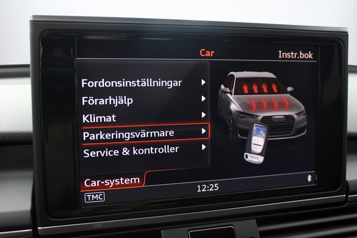 Utrustningen inkluderar bland annat: Automat, Infällbar Dragkrok, Parkeringsvärmare, Keyless Start, Elbaklucka, Sportsäten, Sätesvärme, Climatronic, Sportratt, Läderratt, Multifunktionsratt, Val av körprofil, Parkeringssensorer fram och bak, LED-ljus, Adaptivt Helljus, Ljussensor, Regnsensor, Farthållare, Backstartassistans, Auto Hold, Bromsassistans, Värmeisolerande rutor, Tonade rutor, Rails, ISOFIX, Larm, Dieselvärmare, Audi Drive Select, m.m.